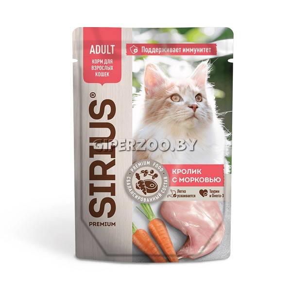 Влажный корм Сириус Premium для кошек Кролик с морковью 85г