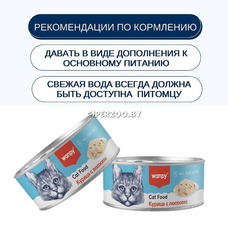 Wanpy Cat паштет (курица, лосось), 95 г – это высококачественный сбалансированный корм, который обеспечит вашего питомца необходимыми витаминами и минералами.
