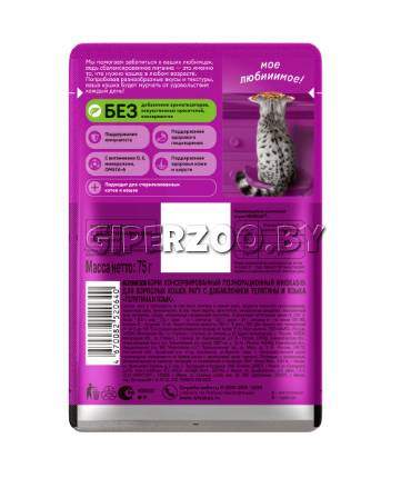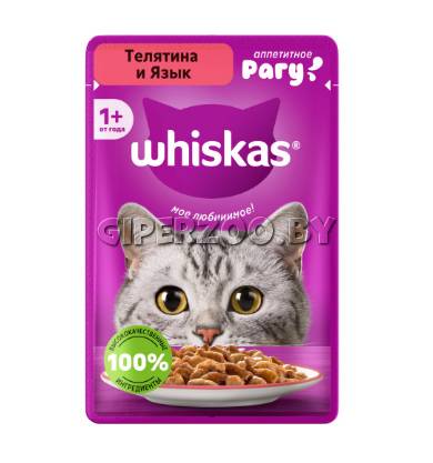 Это сбалансированный рацион, приготовленный так, как любит Ваша кошка. Аппетитное рагу с телятиной и языком в густом соусе обязательно понравится Вашей любимице. Рацион Whiskas содержит все необходимое, чтобы еда Вашей кошки была не только вкусной, но и полезной. Whiskas поддержит иммунитет, позаботится о здоровом пищеварении и здоровье кожи и шерсти Вашей кошки. Подходит для стерилизованных котов и кошек.