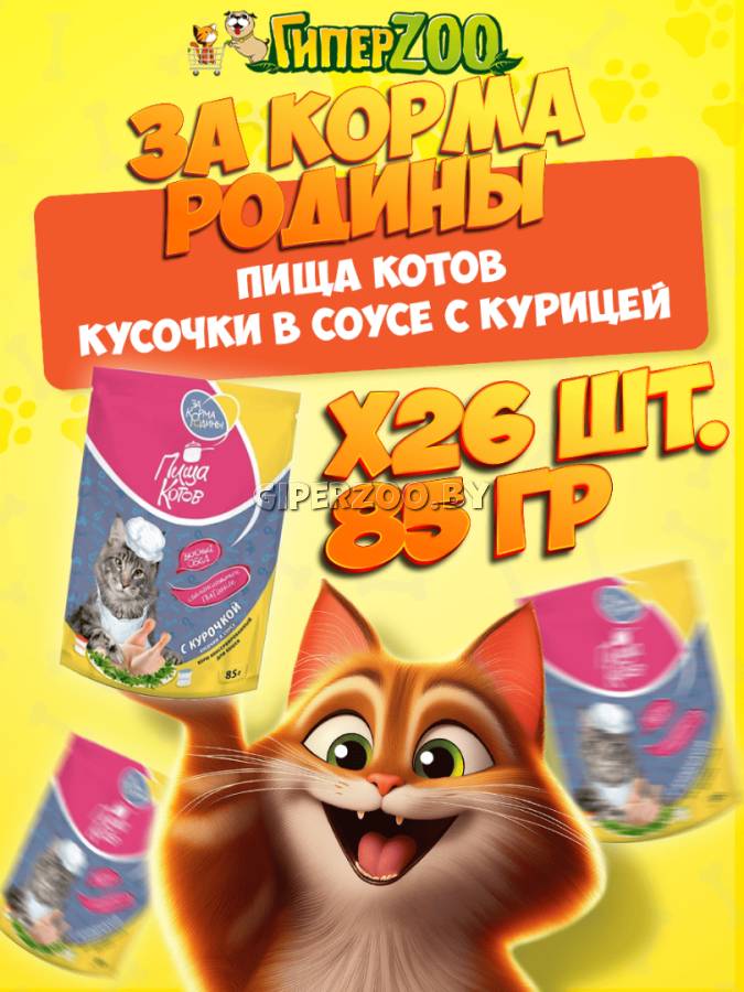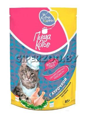Состав: мясо и продукты животного происхождения (в т.ч. курица мин. 4%), растительные компоненты, минеральные добавки, загустители, витамины (в т.ч. таурин).