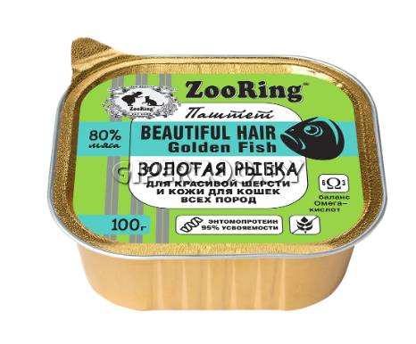 ZooRing Beautiful Hair Паштет с львинкой Золотая рыбка — полнорационный консервированный корм для красивой шерсти и кожи кошек всех пород.