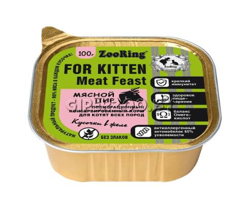 ZooRing Kitten Кусочки в желе с львинкой Мясной пир — полнорационный консервированный корм для котят.