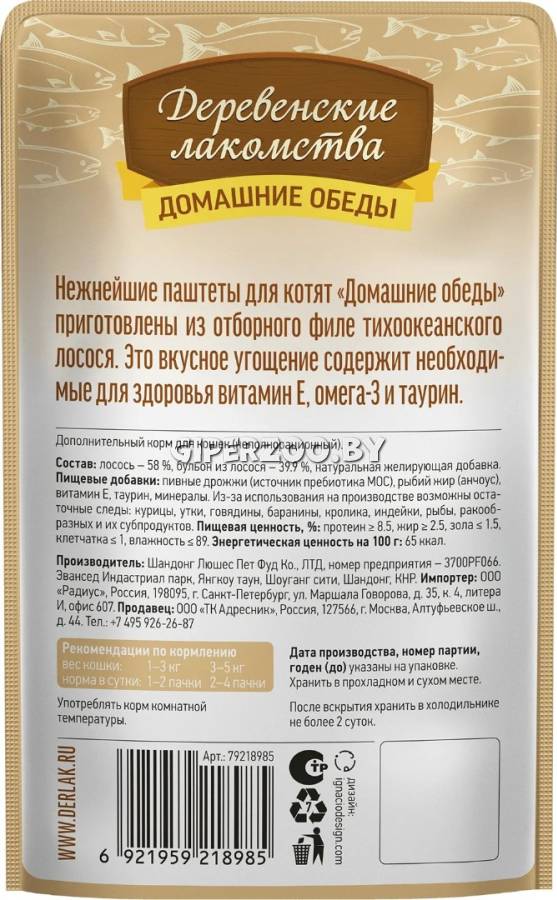 Деревенские лакомства для котят Отборный лосось — влажный корм для котят.