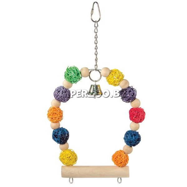 Игрушка для птиц "Качели с шариками" - это игрушка для птиц в виде качелей с плетеными и деревянными шариками.