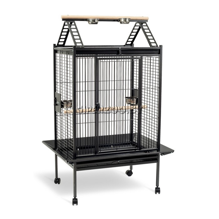 Клетка подходит для средних и крупных попугаев. Съемный металлический каркас. Съемный лоток для легкой очистки. Верхняя ручка. В комплекте с колесами.