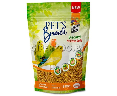 Pet's Brunch Функциональный десерт Biscotti Yellow Soft, 230 гр - это специально разработанная функциональная добавка к основному рациону питания в период активного роста, линьки, сезона размножения, а также для укрепления здоровья ослабленных птиц.