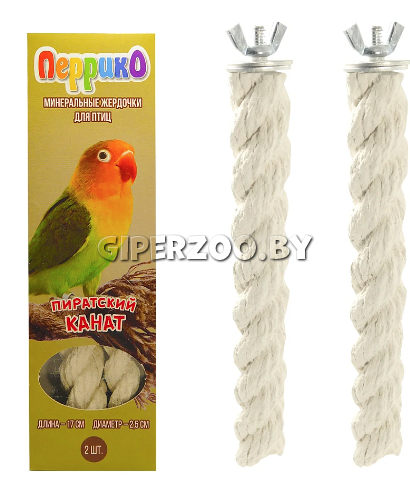 Перрико Минеральные жердочки для птиц Пиратский канат длина 17см. диаметр 2.5 см, помогут восполнить недостаток полезных веществ в корме, который вы даёте своему пернатому питомцу. Средство, в котором содержатся естественные источники витаминов, сделает перья густыми и яркими, а клюв и скелет — крепкими.