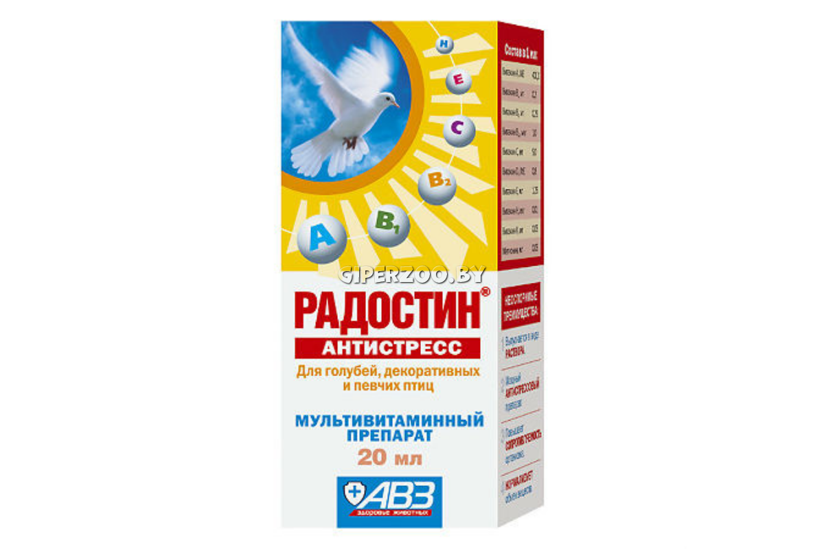 Мультивитаминный водорастворимый комплекс для голубей, попугаев, канареек и других декоративных и певчих птиц.