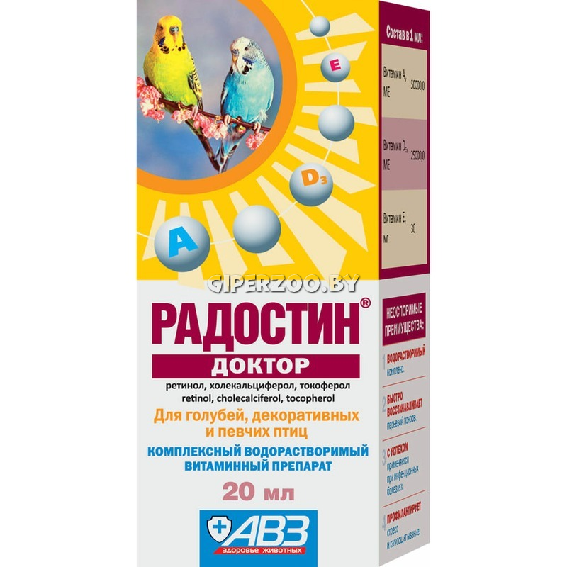 Комбинированный мультивитаминный комплекс для профилактики и лечения гиповитаминозов и заболеваний, развивающихся на их фоне у голубей, декоративных и певчих птиц.