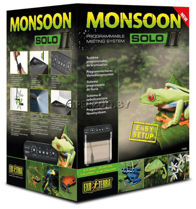 Система осадков для террариумов Hagen Exo Terra Муссон Соло является программируемой системой поддержания необходимой влажности, подобно природному дождю, подходит для всех типов террариумов и оранжерей.