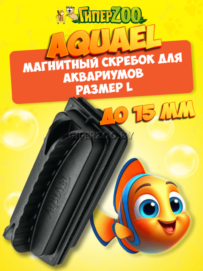 Aquael Скребок Magnet Cleaner - это магнитный очиститель, предназначенный для удаления водорослей и других загрязнений со стенок пресноводных и морских аквариумов. На поверхности очистителя, непосредственно соприкасающейся со стенками аквариума, имеется покрытие, которое несмотря на шероховатость не царапает и не повреждает стенок. Благодаря этому покрытию очиститель прекрасно удаляет даже стойкие зеленые и красные водоросли, а также налет и подтеки с внешней стороны аквариума. Чистку облегчает широкая, эргономичная ручка. магнитами. Одну часть очистителя следует поместить в аквариумную емкость, а вторую прикрепить к стенке напротив первой. Передвижение наружной части очистителя по стенке аквариума вызывает одновременное передвижение и той части, которая находится в воде. Это позволяет легко очистить стенку от водорослей, не погружая руки в воду. размер L - до 15 мм