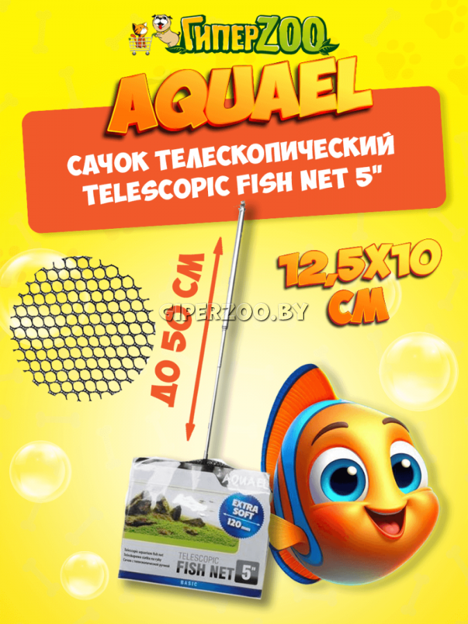 Сачок Aquael аквариумный телескопический 5" 12.5x10 см