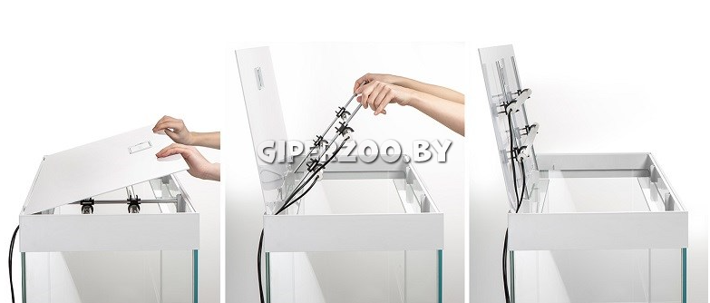 Аквариум Opti Set размывает границы между вами и подводным миром. Он впечатляет своей необычайной прозрачностью и безупречным исполнением. Стекло «Opti», полированные края и сатиновая отделка крышки образуют элегантное единое целое. Больше прозрачности. Аквариум изготовлен из стекла типа «Оpti» (спереди и по бокам). Полированные края, бесцветное соединение. Освещение Leddy Tube Day & Night в комплекте. Три режима освещения: DAY / DAYBREAK / NIGHT. Низкое энергопотребление и современная светодиодная технология. Возможность добавления освещения до 9 модулей Leddy Tube. Возможность изменения положения освещения. Свободный и удобный доступ внутрь аквариума ссистемой System Smart Open в крышке. Отсутствие поперечных усиливающих элементов. Отверстия в задней части крышки для монтажа шлангов / кабелей. Модная сатиновая отделка крышки и нижней рамки. Удобно кормить рыбок. Размеры (см) 81х36х51