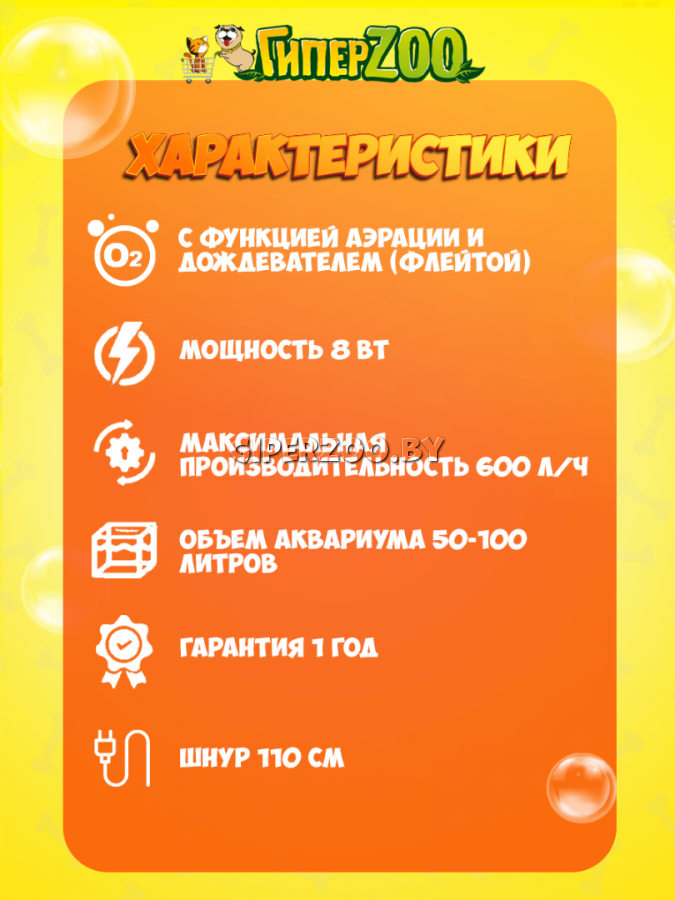 Внутренний фильтр для аквариума AquaReef AF-600 с функцией аэрации и дождевателем (флейтой) предназначен для очищения воды в аквариуме и обогащения ее кислородом. Фильтр подходит для пресноводных аквариумов объемом от 50 до 100 литров. Внутренний фильтр для аквариума AquaReef AF-600 с функцией аэрации и дождевателем (флейтой) предназначен для очищения воды в аквариуме и обогащения ее кислородом. Фильтр подходит для пресноводных аквариумов объемом от 50 до 100 литров. Технические характеристики: • Производительность - 600 л/ч; • Мощность - 8 Вт; • Отсутствует регулировка мощности; • Шнур 110 см.