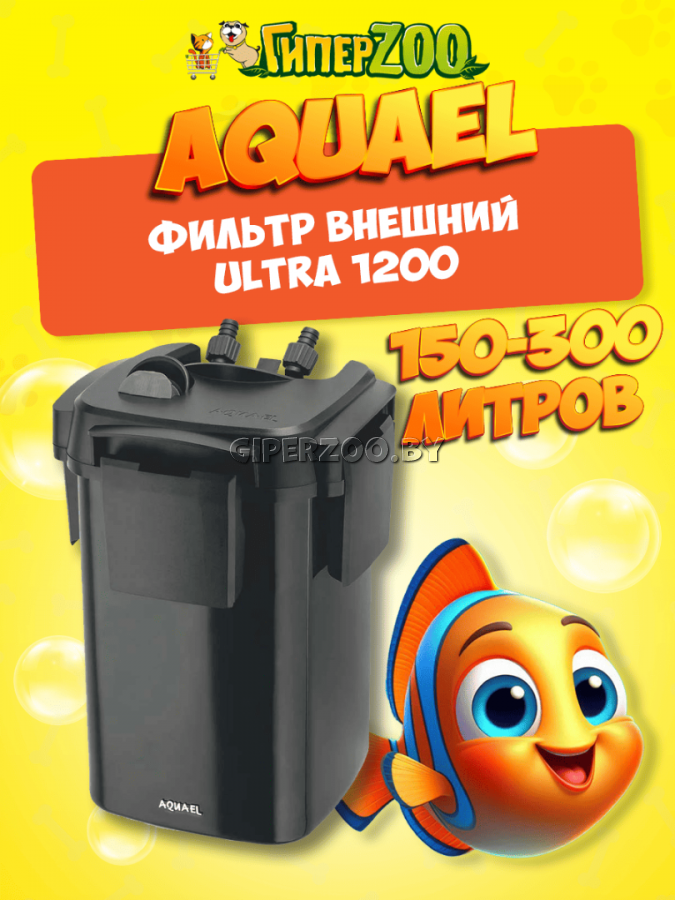 Фильтр внешний для аквариума AQUAEL ULTRA 1200 Фильтр внешний для аквариума AQUAEL ULTRA 1200. Для аквариумов от 160 до 300 литров. Размер фильтра (ш/гл/в) 27х29х42,5 см., производительность 1200 л/ч, мощность 14 Вт., высота подъема 160 см., диаметр шлангов 16/22 мм., объем фильтра 13.5 л., емкость корзины 1,9 л., кол-во корзин 4 шт. Префильтра нет