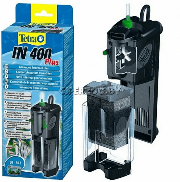 Tetra IN 400 Plus - высокопроизводительный, мощный и удобный внутренний фильтр для мехaнической, биологической и химической очистки воды в аквариуме объемом 30-60 л.