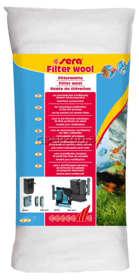 Фильтрующая вата SERA Filter Wool - используется для фильтрации аквариумной воды.