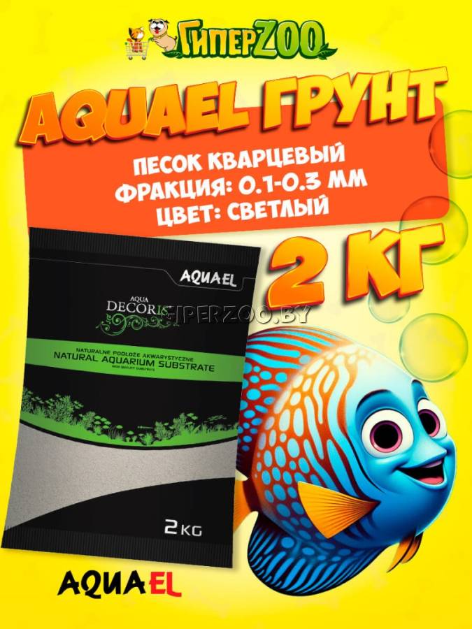 Кварцевый песок 0.1-0.3 мм - натуральный аквариумный грунт от фирмы AQUAEL. Рекомендован для использования в аквариумах с рыбками, ведущими донный образ жизни (мелкий песок не вызывает повреждений кожи). Данный грунт не влияет на параметры аквариумной воды. Подходит для всех типов пресноводных аквариумов. Фасуется в удобные, прочные, полиэтиленовые мешки. Перед использованием грунт достаточно промыть под проточной водой для удаления взвесей, которые могут в нем находиться.