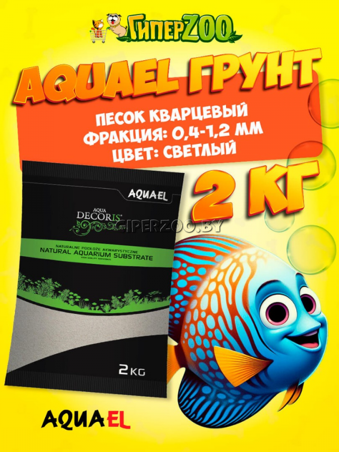 Кварцевый песок 0,4-1,2 мм - натуральный аквариумный грунт от фирмы AQUAEL. Рекомендован для использования в аквариумах с рыбками, ведущими донный образ жизни (мелкий песок не вызывает повреждений кожи). Данный грунт не влияет на параметры аквариумной воды. Подходит для всех типов пресноводных аквариумов. Перед использованием грунт достаточно промыть под проточной водой для удаления взвесей, которые могут в нем находиться.