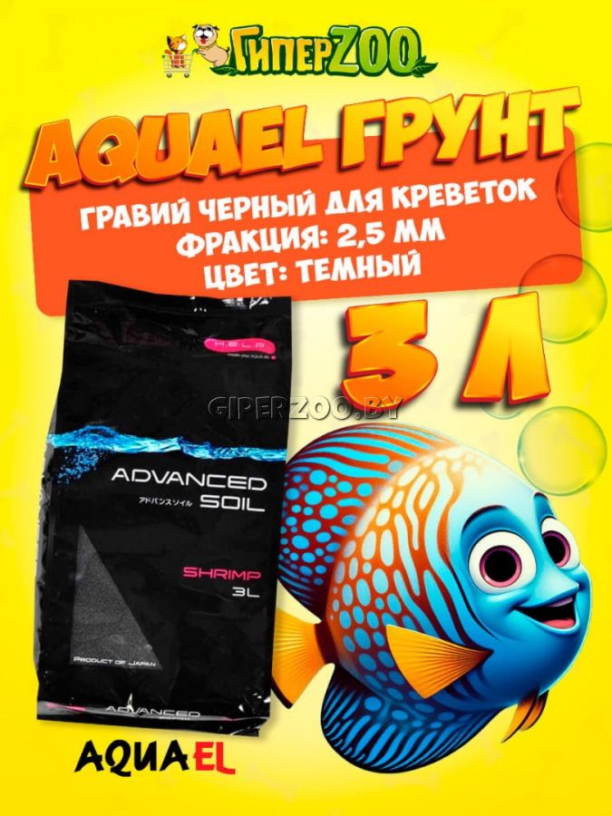 Грунт AQUAEL ADVANCED SOIL SHRIMP 3 литра - специализированный грунт, предназначенный для креветочников. Выпускается в виде черного гравия с зернами правильной формы, диаметром около 2,5 мм.