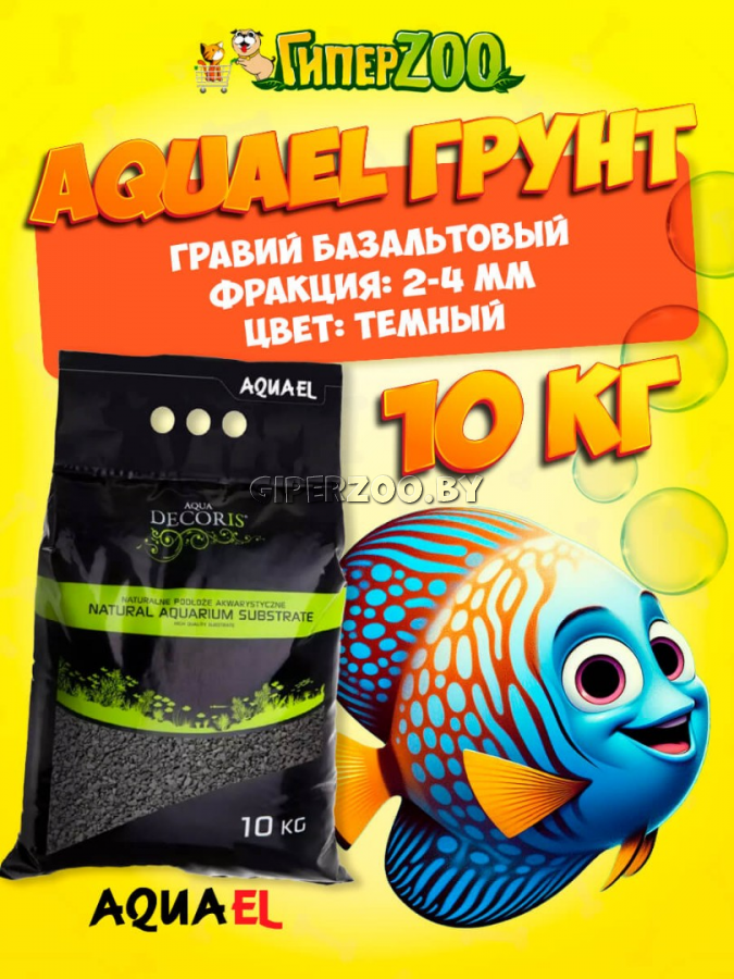 AQUAEL Грунт гравий базальтовый 2-4 мм, 10 кг