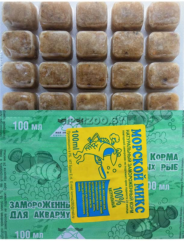 Замороженный корм для рыб Морской микс применяется в качестве основного или дополнительного корма для сбалансированного рациона аквариумных рыб.