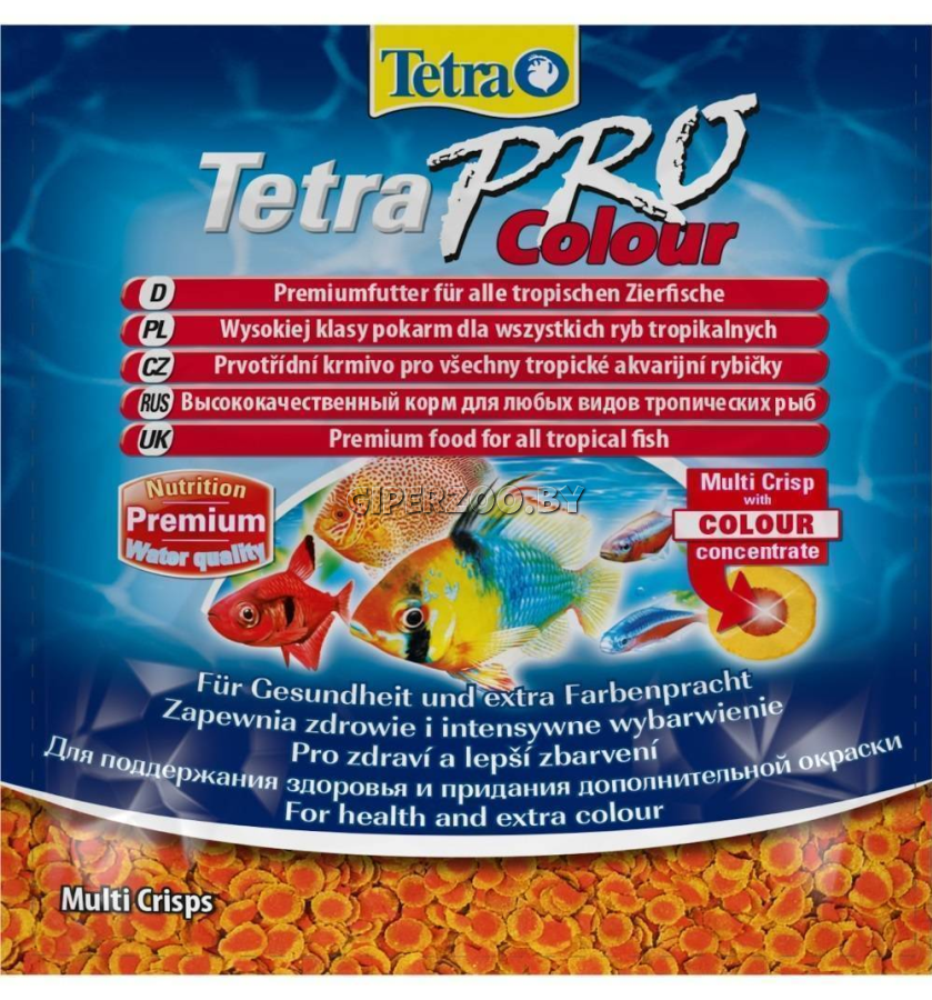 Комплексный корм TetraPRO Colour Multi-Crisps изготовлен в виде специальных чипсов с оригинальным мульти-составом. Привлекателен для рыб, быстро поедается, не загрязняя воду. Тщательно подобранные ингредиенты сохраняют питательные вещества и витамины природного сырья. Сбалансированный состав обеспечивает отличную усваиваемость и пищеварение. Обогащён пребиотиками, дающими крепость иммунитета и увеличение жизнестойкости. TetraPRO Colour Multi-Crisps разнообразен полезными микроэлементами. Способствует здоровому развитию и активности. Особый концентрат содержит каротиноиды для особенно яркого окраса. Предназначен для всех тропических рыб.