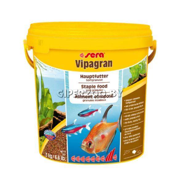 SERA Корм гранулы для всех рыб "Vipagran", 3 кг - Основной корм, состоящий из медленно тонущих мягких гранул sera випагран – популярный основной корм, состоящий из мягких гранул, произведенных путем бережной обработки сырья; предназначен для всех видов рыб, главным образом кормящихся в средних слоях воды. Тщательно подобранные ингредиенты корма с пребиотическим действием способствуют здоровью и жизнестойкости рыб. Медленно тонущие гранулы, надолго сохраняют свою форму в воде, не загрязняя ее, великолепно усваиваются организмом рыб. Благодаря мягкой эластичной структуре частиц этот вкусный сбалансированный корм также подходит для рыб с очень маленьким ртом и узкой глоткой.