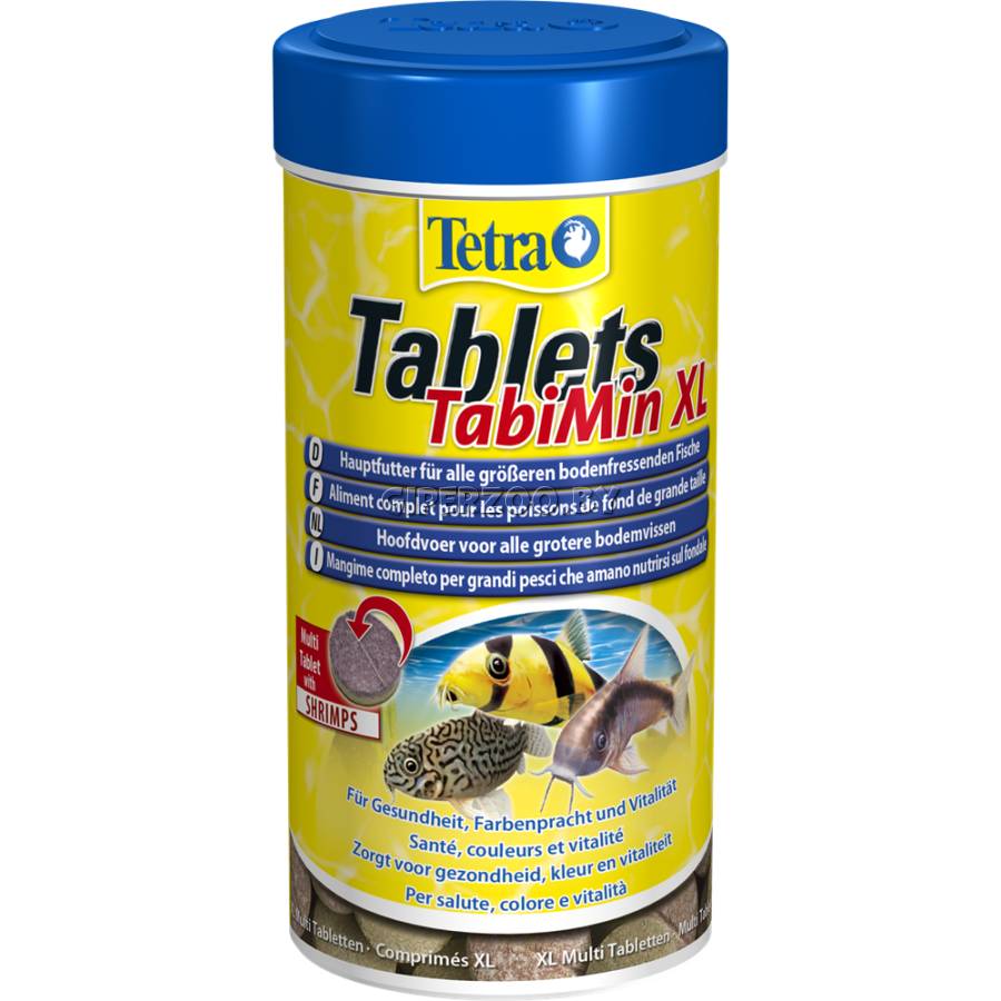 Tetra Tablets TabiMin Основной корм в виде таблеток, предназначенный для всех видов донных рыб. Полноценный корм, разработанный специально для донных рыб: сомов, боций, придонных барбусов. Таблетки опускаются на дно, поэтому можно заранее определить место точечного кормления. Упрощает кормление пугливых рыб, так как таблетки могут быть помещены на дно среди растений в укромном месте аквариума. Содержание стабилизированного витамина С обеспечивает повышенную устойчивость организма рыбы к болезням1196кс витаминов, питательных веществ и микроэлементов.