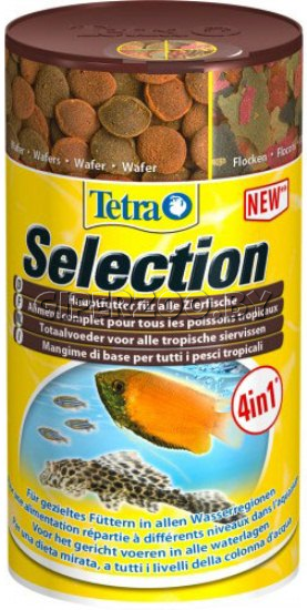 Tetra Selection 4 в 1 это полноценный корм из хлопьев, чипсов, гранул и таблеток, в 4 отдельных ячейках, для аквариумных рыб, которые питаются в разных водных слоях. Tetra Selection 4 в 1 имеет для каждой рыбы свой корм, так как выбранная кормовая смесь состоит из лучших хлопьев, чипсов, гранул и таблеток с соответственно разными плавательными и тонущими свойствами для разнообразного, сбалансированного и здорового питания. Tetra MinТетраМин хлопья: плавают на поверхности воды, что идеально подходит для рыб, питающихся в верхних слоях. Tetra Min Chips ТетраМин чипсы: плавают на поверхности и медленно погружаются, что идеально подходит для рыб, питающихся в верхних и средних слоях воды. Tetra Min Granules ТетраМин гранулы: медленно погружаются, что идеально подходит для рыб, питающихся в средних слоях воды. Tetra Waffer Mix ТетраВафер Микс: быстро погружаются, для всех питающихся на дне рыб. Вес: 45 гр Объем: 100 мл
