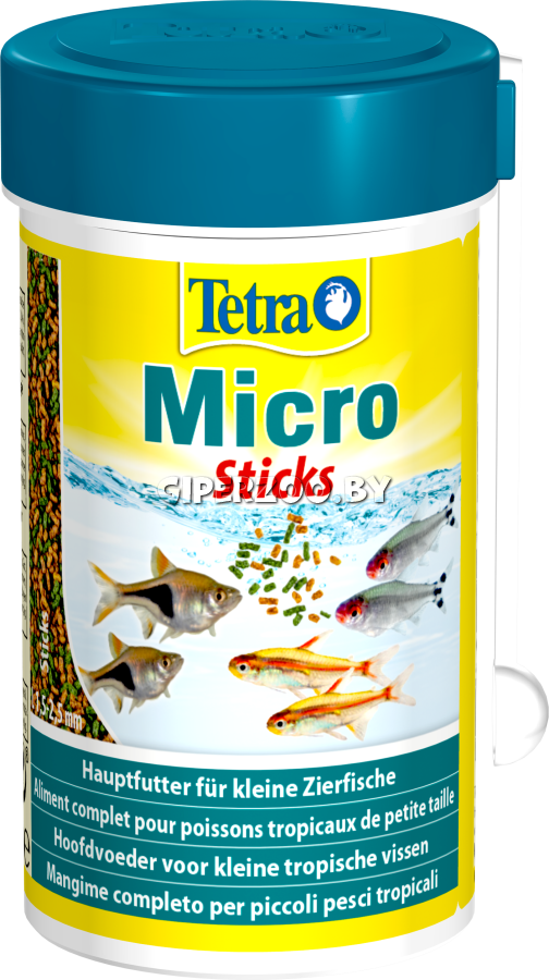 Tetra Micro Sticks - Тетра Микро Стикс особенно хорошо подходит в качестве полноценного корма для всех видов мелких декоративных рыб, которые кормятся в верхних и средних слоях воды. Благодаря своему диаметру (1,5–2,5 мм) даже рыбки с небольшими ртами смогут с легкостью потреблять корм. Небольшой размер палочек Тетра Микро Стикс идеально подходит для мелких рыб: корм быстро размокает в воде, упрощая процесс приема пищи.