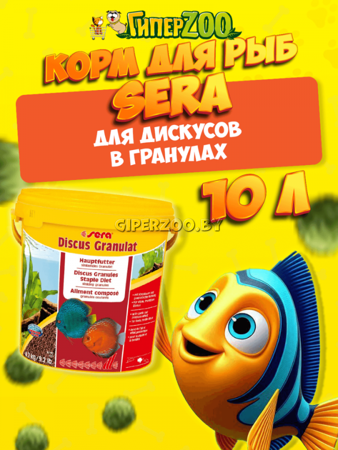 Основной корм для всех видов дискусов. sera дискус гранулят – основной корм, состоящий из мягких гранул, произведенных путем бережной обработки сырья; предназначен для всех видов дискусов (включая молодь) и других привередливых декоративных рыб. Устойчивость к заболеваниям, а также отличный потенциал к размножению рыб достигается с помощью легко усваиваемого белка, полученного из водных организмов и дополнительно входящим в состав минералам. Чеснок и ингредиенты с пребиотическим действием превосходно сочетаются с составом корма, формируя его очень привлекательный для дискусов вкус. При попадании гранул в воду они становятся мягкими, при этом не увеличиваются в размере, и сохраняют свою форму. Таким образом не происходит загрязнения воды.