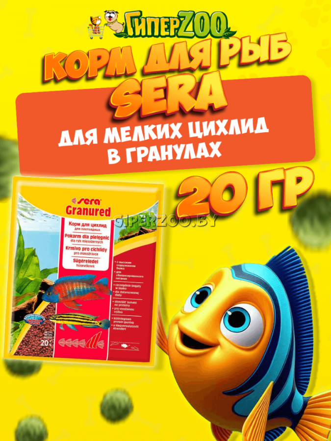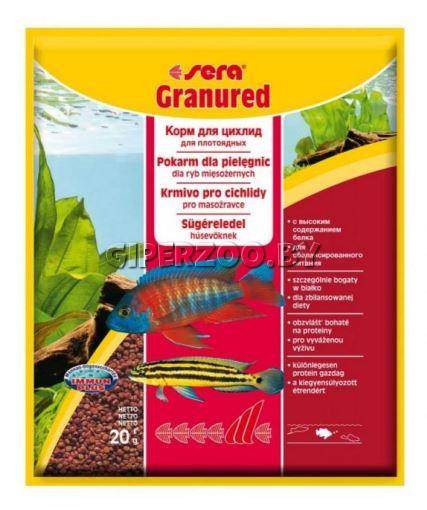 SERA Корм гранулы для мелких цихлид "Granured", 20 гр -основной корм, состоящий из гранул, произведенных путем бережной обработки сырья; предназначен для более мелких, преимущественно плотоядных, цихлид и всеядных видов.