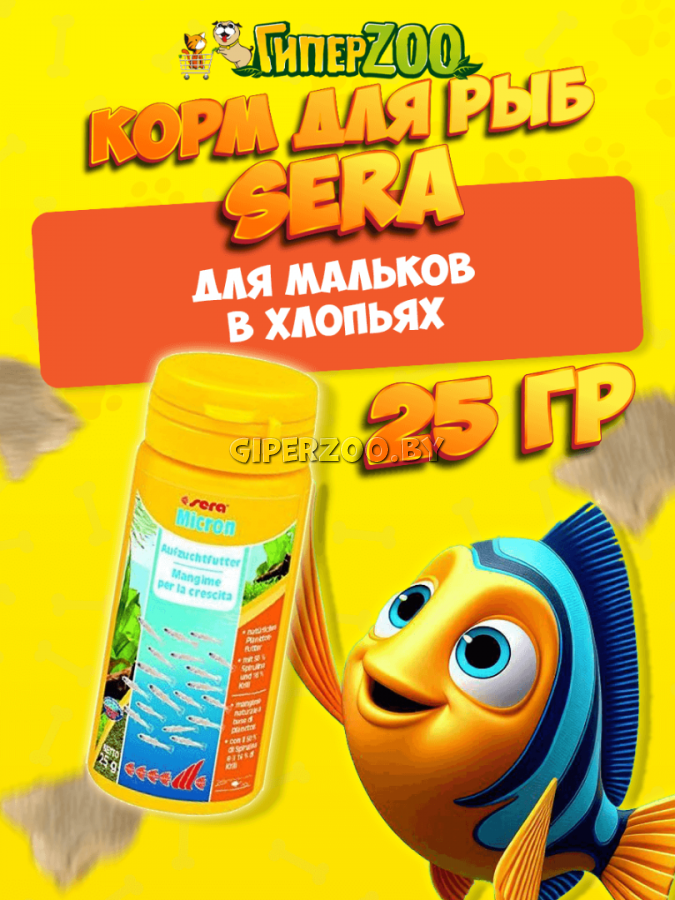 SERA Корм для мальков "Micron", 25 гр - корм для выращивания, близкий по составу к природному. Этот корм охотно поедается даже самыми маленькими и наиболее привередливыми аквариумными животными (личинками рыб и земноводных, рачками артемии и другими) в пресноводных и морских аквариумах.