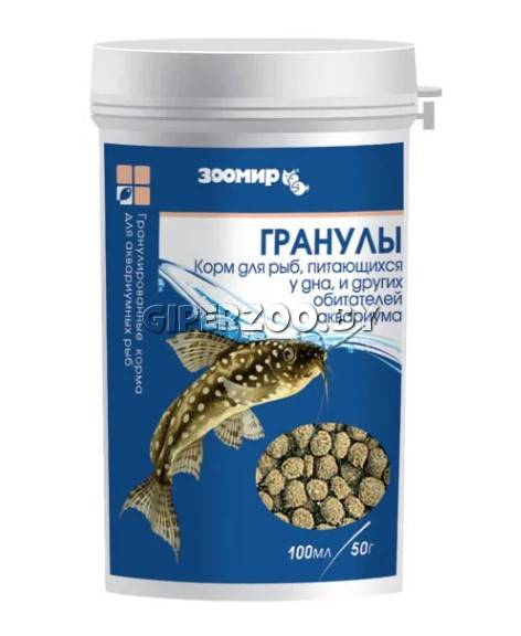 Зоомир Гранулы – универсальный гранулированный корм (тонущие гранулы) для большинства обитателей аквариумов. Корм отличается высокой усвояемостью, не замутняет воду.