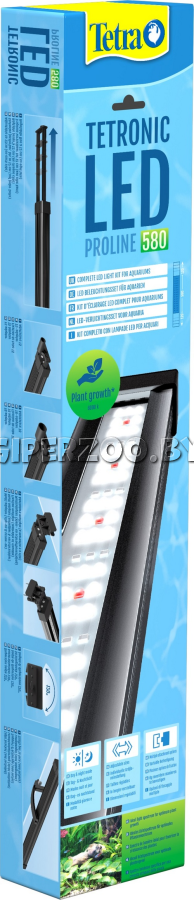 Благодаря адаптеру (входит в комплект) этот светильник можно установить на край или под крышкой вашего аквариума. Светильник Tetronic LED также поставляется с широким ассортиментом аксессуаров, поэтому вы можете легко установить его в существующие цоколи для люминесцентных ламп T5 и T8, которые уже есть в вашем аквариуме. Всего лишь нужно прикрепить адаптер к выдвижным удлинителям — вам даже не потребуются какие-либо дополнительные инструменты. Регулируемые выдвижные удлинители позволяют увеличить длину светодиодного светильника на 12 см с каждой стороны, чтобы можно было отрегулировать его в соответствии с размером вашего аквариума. Алюминиевый корпус высочайшего качества и специальная система герметизации также защищают светильник Tetronic LED от попадания влаги. Это делает светильник Tetra Tetronic LED идеальным решением для любого владельца аквариума. Угол линз светодиодов - 120 градусов. Длина светильника 580-820 мм