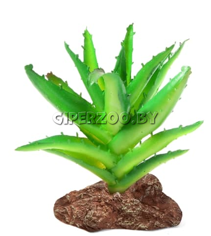 Растения - это не только завершающий штрих в оформлении, но и необходимый атрибут любого террариума. Они дают укрытие и тень, по ним животное может перемещаться, они придают трехмерность внутреннему пространству террариума. Пластиковое растение на подставке из полиэфирной смолы подходит для оформления пустынных, полупустынных и тропических террариумов.