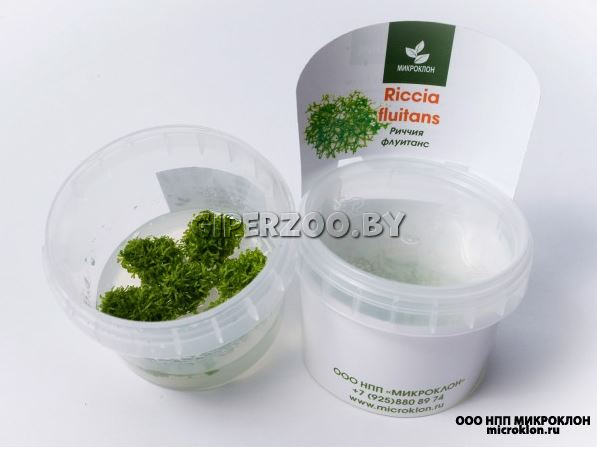 Плавающий по поверхности воды ажурный ярко-зеленый мох, образующий очень красивые островки. Растение встречается у аквариумистов очень часто и используется в качестве естественного субстрата для нереста рыб и укрытия для мальков. Кроме того, его применяют в качестве затенителя. Условия содержания этого растения несложны. Риччия хорошо растет в умеренно теплом и тропическом аквариумах. Наиболее подходящая температура 22 - 26 °С. При температуре ниже 20 °С рост замедляется, растение уменьшается в размерах и может погибнуть. Лучше всего оно растет в мягкой воде с нейтральной или слабощелочной реакцией. При жесткости воды больше 8° рост риччии ухудшается. Желательно регулярно подменивать до 1/5 объема воды. Освещение должно быть ярким. При недостатке света риччия распадается на отдельные веточки и не образует островков. При солнечном освещении растение лучше притенять. В качестве источников искусственного света лучше использовать люминесцентные лампы типа ЛБ, мощность которых должна составлять не менее 2 Вт*1дм2