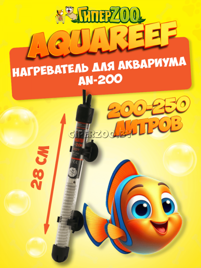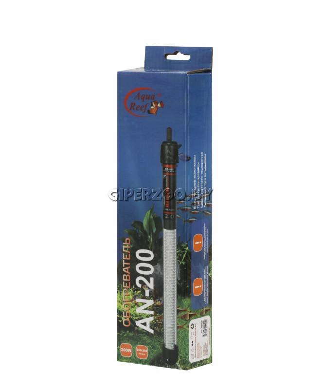 Aquareef AN-200 - Обогреватель для аквариума из высокопрочного кварцевого стекла. Служит для поддержания в аквариуме определённой/заданной температуры. Полностью погружаемый; Удобная регулировка температуры; Высокая точность поддержания температуры ±1°C; Сигнальная лампа; Простое обслуживание Мощность: 200 Вт. Для аквариума: 200 литров