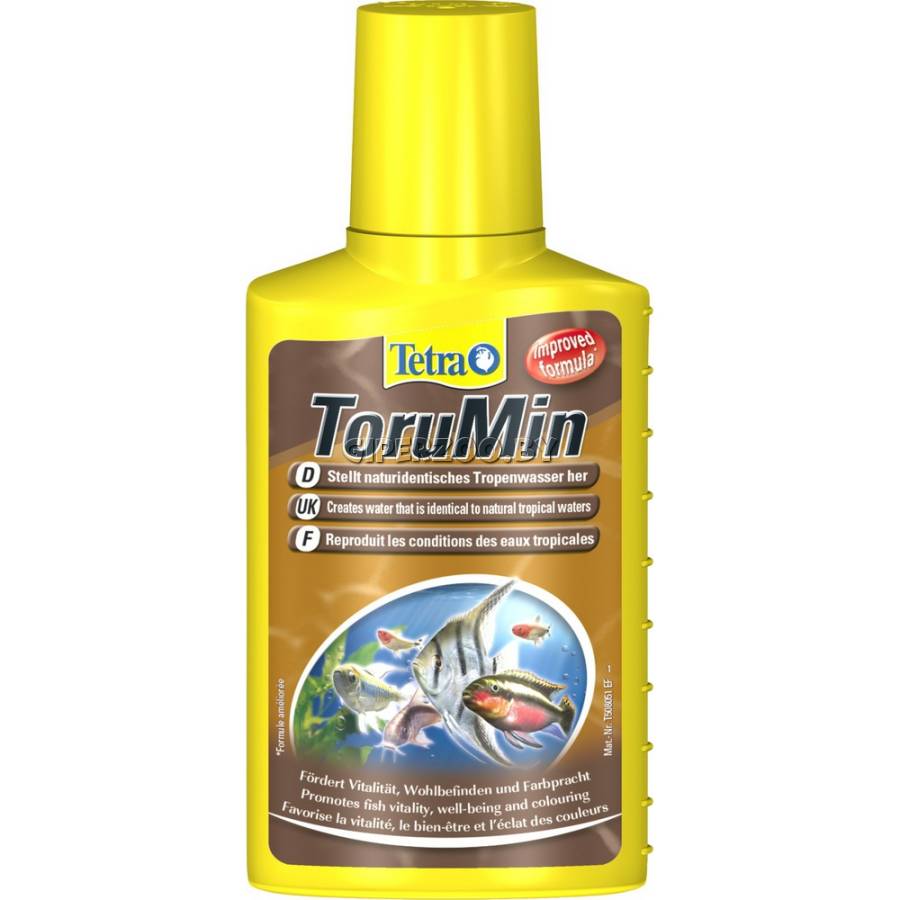 Tetra ToruMin – средство для создания натуральной тропической темной воды. В состав препарата входят натуральные, специально подобранные экстракты торфа. Повышает интенсивность окраски и, благодаря наличию биологически активных веществ, стимулирует процессы жизнедеятельности рыб. Слегка подкисляет и смягчает воду, делая ее идеальной для рыб, обитающих в мягкой слабокислой воде. Помогает в разведении и уходе за «проблемными» рыбами.