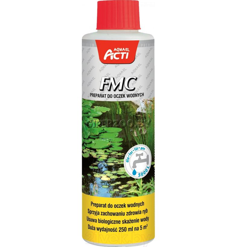 AQUAEL ACTI FMC представляет собой высокоэффективный препарат для дезинфекции воды пруда. Удаляет вредные бактерии, вирусы и грибки , которые могут вызвать болезни рыб. Препарат также может быть использован для дезинфекции прудами (например , в зоомагазинах и садовых центрах), инструментов и оборудования (сетей, посадки сетей).