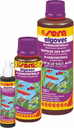 SERA Кондиционер для воды против водорослей "Algovec", 50 мл - предназначен для борьбы со всеми видами водорослей в пресноводной среде аквариума. Водоросли в аквариуме являются ценным источником пищи для некоторых видов рыб и мелких животных. Они также являются индикатором качества воды в аквариуме: при недостаточном освещении или слишком высоком уровне содержания нитратов в течение длительного времени наблюдается рост синих и коричневых водорослей, таких как Cyanophyta. В этом случае необходима очистка аквариума и замена ламп на соответствующие необходимому уровню. Если освещенность в аквариуме выбрана правильно, но при этом уровень нитратов слишком высок, а вода не обрабатывается такими кондиционерами как «Акутан» или «Морена» начинаются разрастаться светло-зеленые и иные виды водорослей. Такие виды водорослей вредны для декоративных рыб и мелких животных. При нарушении биологического баланса в аквариуме происходит интенсивный рост водорослей, что в свою очередь может нанести вред рыбам