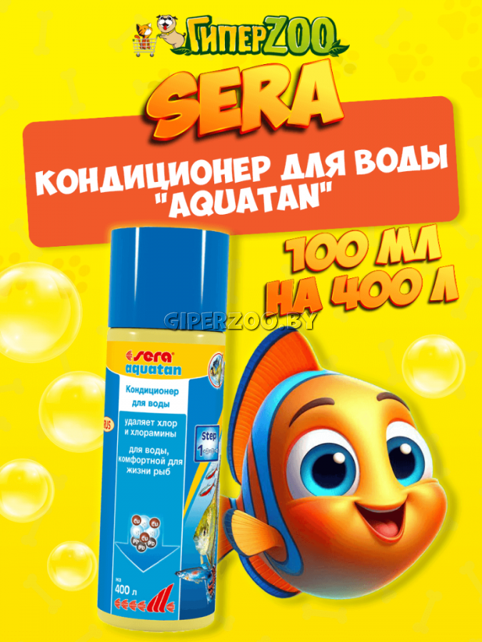 Sera aquatan немедленно удаляет вредные вещества и превращает водопроводную воду в здоровую аквариумную воду, комфортную для жизни рыб. Он гарантирует оптимальные условия для жизни рыб, беспозвоночных, растений, а также полезных микроорганизмов.