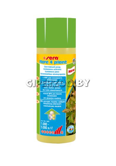 SERA "Flore 4 Plant" удобрение для растений, 250 мл. - Удобрение для растений Sera FLORE 4 PLANT - средство по уходу за растениями в аквариумах с небольшим поголовьем обитателей. При небольшом количестве животных в аквариуме или полном его отсутствии очень часто наблюдается недостаток необходимых макроэлементов. Результатом такого дефицита является плохой рост растений. Sera FLORE 4 PLANT был разработан для снабжения здоровых и бурно растущих водных растений азотом, фосфором и калием в оптимальном соотношении в аквариумах выполненных в "акваскейп" и "Голландском" стилях. Хорошо переносим всеми беспозвоночными.