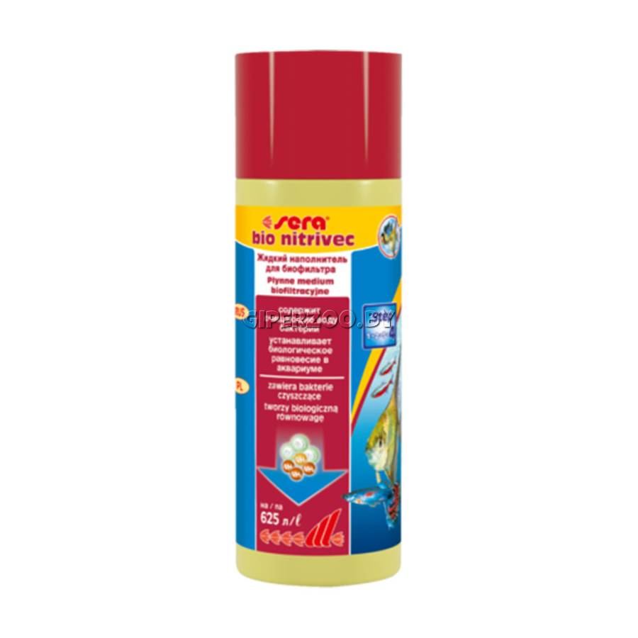 SERA Кондиционер для запуска аквариума "Bio-Nitrivec", 100 мл - Жидкий наполнитель премиум-класса для фильтра 100 мл. Опасные для рыб и беспозвоночных токсичные соединения азота, такие как аммоний и нитриты постоянно образуются в воде аквариума. Sera био нитривек, продукт биотехнологии sera, содержит миллионы очищающих бактерий которые непрерывно сокращают количество токсичных веществ, быстро и надежно устанавливая биологическое равновесие в аквариуме. Содержащая в продукте вулканическая горная порода удаляет вредные вещества, эффективно связывает муть и обеспечивает площадь для расселения очищающих бактерий. Для здоровой, кристально чистой и биологически активной воды в аквариуме. Обеспечивает нитрифицирующих бактерий площадью для поселения. Создает биологически активную окружающую среду в аквариуме.