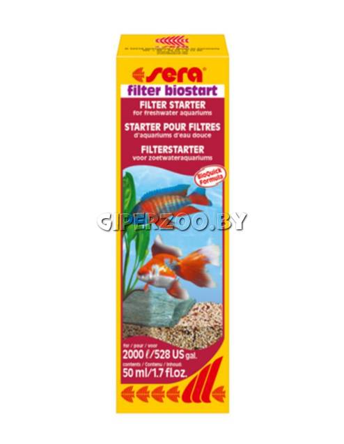 SERA Кондиционер для запуска аквариума "Filter Biostart", 50 мл - Ускоритель биологического запуска для фильтров и аквариумов. sera filter biostart позволяет сократить количество органических отходов в воде, таких как экскременты рыб и остатки пищи. Также предотвращает появление неприятных запахов и обеспечивает устойчивое биологическое равновесие. Быстрая активация биологических наполнителей. Добавлять в сухой sera siporax. После активизации сразу поместите наполнитель sera siporax в фильтр и запустите его. Комплекс из энзимов и микроорганизмов, необходимых для качественного роста всех биобактерий, участвующих в процессах разложения органики в аквариуме.
