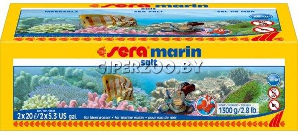 SERA Соль морская " Marin Salt", 1,3 кг - Морская соль для аквариума. Морская соль для водопроводной воды и воды, полученной методом обратного осмоса. 1300г для 40 л. Благодаря превосходной однородности и равномерному размеру гранул sera marin соль быстро и без осадка растворится, образуя кристально чистую морскую воду, имеющую естественные уровни GH и KH и содержащую много кальция, а также магния в биологически правильном соотношении. Благодаря буферной системе, близкой к естественной, в sera marin соль pH-уровень остается точным и достоверным в правильном диапазоне.