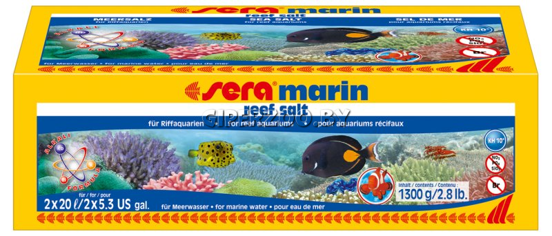 SERA Cоль морская "Marin Reef Salt" 1,3 кг – морская соль премиум-качества, аналогичная природной, для великолепных рифов. Полностью синтетическая и не содержит вредных веществ. С щелочной формулой (Rb/K/Li) для усиления яркости окраса кораллов с жестким скелетом. С повышенным уровнем KH 10° для стабильности pH-уровня. Идеальна также для применения с озонаторами (так как не содержит бром). Благодаря особенно мелкому размеру гранул растворяется сразу же и без осадка. Может применяться немедленно после растворения. Даже очень чувствительные животные не испытывают стресса при подмене воды. Указания по применению: Растворите в дехлорированной водопроводной воде или в деионизированной с помощью обратного осмоса воде (33 г/л). После краткой аэрации и сильного перемешивания соль может использоваться в аквариуме. Избегайте слишком большого различия между плотностью воды в аквариуме и водой, подготовленной на подмену. Не готовьте концентрированные растворы для подмены.