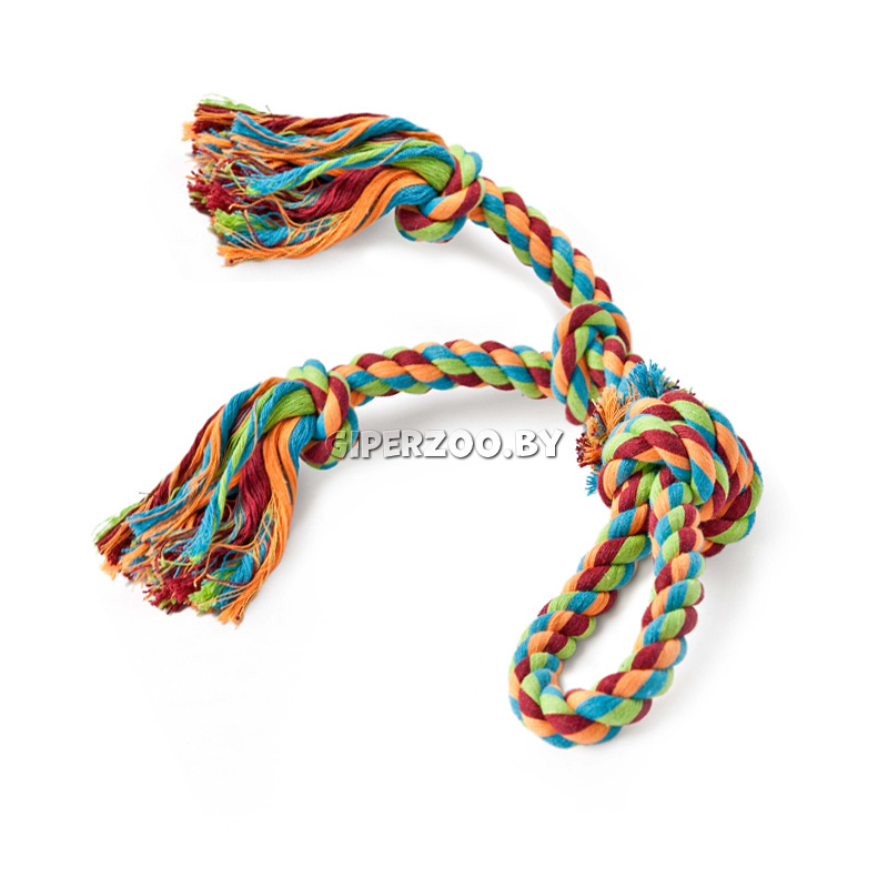 Представляет собой прочные перекрученные веревки, что обеспечивает ее долговечность и гарантирует длительность их использования. Большое количество узлов обеспечивает удобство захвата лапами и пастью. Выступает хорошей заменой косточке.