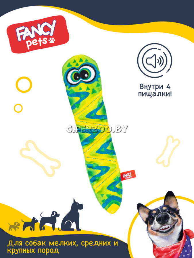 В "Змейке Пискле" от Fancy Pets спрятаны целых четыре пищалки, от которых собачки просто без ума.
